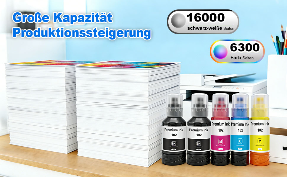 hehua High Yield Ersatz-Tintenpatronen für Epson E102 haben eine hochwertige Tinte, die eine hohe Effizienz bei minimaler Verschwendung gewährleistet und gleichzeitig gestochen scharfe Ausdrucke für ein hervorragendes Druckergebnis liefert