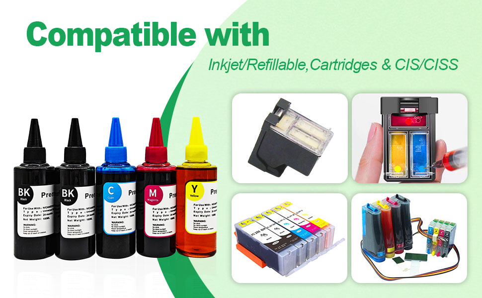 Verlängern Sie die Lebensdauer Ihrer Tintenpatronen und sparen Sie Druckkosten mit diesem professionellen Nachfüllset für Farbstofftinte. Enthält fünf 100ml Flaschen (2 Schwarz, 1 Cyan, 1 Magenta, 1 Gelb) und Präzisionsspritzen für einfaches, sauberes Nachfüllen. Kompatibel mit den meisten HP, Epson, Canon und Brother Tintenstrahldruckern—einschließlich nachfüllbarer Patronen und CISS-Systemen—liefert diese Tinte lebendige, zuverlässige Druckqualität ohne verstopfte Druckköpfe.