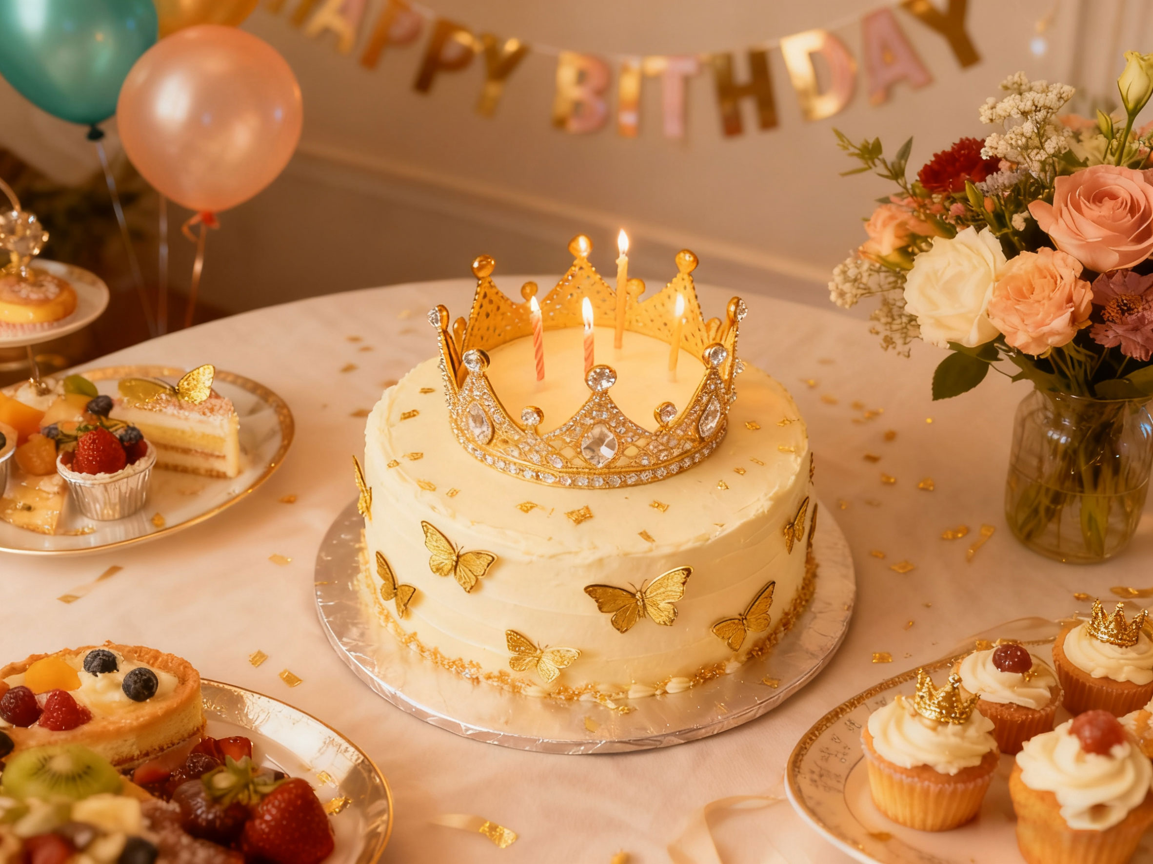 Slide to reveal: Transform a simple cake base into the stunning centerpiece of your celebration. For milestone birthdays like the 21st or 30th, the use of a crown topper surges to around 40%, symbolizing “Today, you reign.”