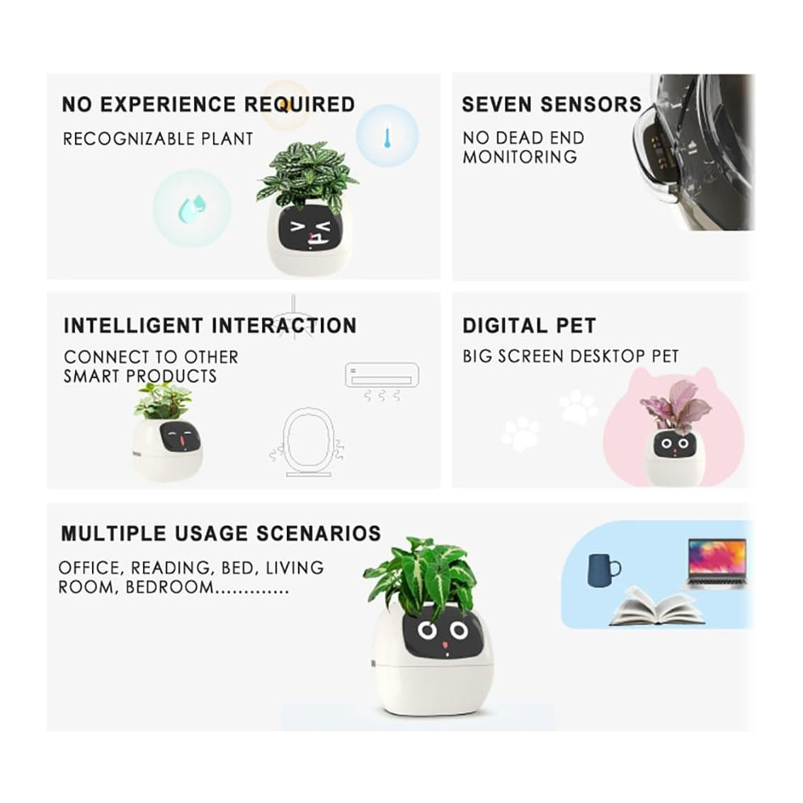 【Wide Range of Applications】Intelligent planter features a sleek and modern design that complements any home or office decor. Whether placed in your living room, kitchen, or workspace, this smart accessory adds a touch of sophistication while enhancing your plant display.